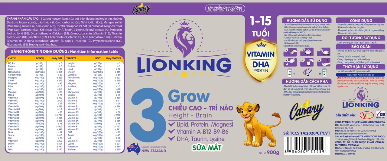 Sữa bột Lion King Grow là loại sữa chuyên dụng cho trẻ có độ tuổi từ 1-15 với tác dụng chính là giúp phát triển chiều cao và tăng cường trí não của trẻ. Ở độ tuổi này của các con, sự chăm chút và chú ý về mặt dinh dưỡng của chúng là chiều cực kì quan trọng , nhất là đối với chiều cao và trí thông minh. Chính vì thế Lion King Grow đã được nghiên cứu và ra đời để thực hiện điều đó. Trong sữa có bổ sung các vi chất DHA, Taurin, Lysin,…đều là các dưỡng chất đã được khoa học chứng mình giúp trí não của trẻ được phát triển, tăng khả năng tư duy vượt bậc. Ngoài ra còn nhiều các dưỡng chất thiết yếu tăng cường canxi gấp 2 lần cho con vươn xa.
