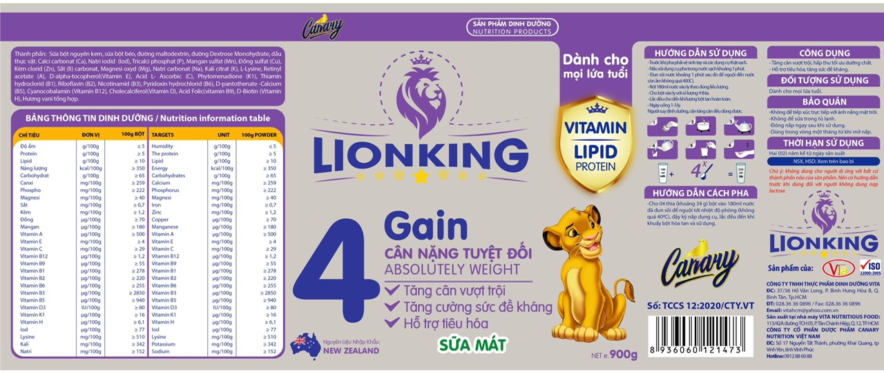 Sữa bột Lion King Gain – Cân nặng tuyệt đối dành cho người gầy được sản xuất bởi Công ty Cổ phần Dược phẩm Canary Nutrition và nằm trong bộ sản phẩm Lion King nổi đình đám của công ty. Lion King bao gồm các dòng sản phẩm nổi bật đa dạng công dụng và phù hợp với nhiều lứa tuổi điển hình như: Lion King Baby, Lion King Sure, Lion King Glusure, Lion King Grow,…đều được người tiêu dùng đánh giá cao sau khi sử dụng. Với mục tiêu “Vì sức khỏe người Việt”, công ty đã không ngừng nghiên cứu và tìm tòi các công thức sữa tối ưu phù hợp với cơ địa của người Việt Nam rồi từ đó cho ra những dòng sữa chất lượng tuyệt hảo nhất.